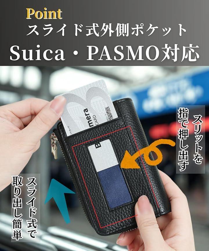 「便利な外側カードポケット」Suica・PASMOなどの交通系ICカードや社員証を素早く取り出せるスライド式ポケットを搭載。