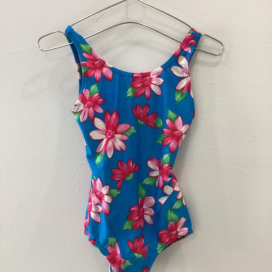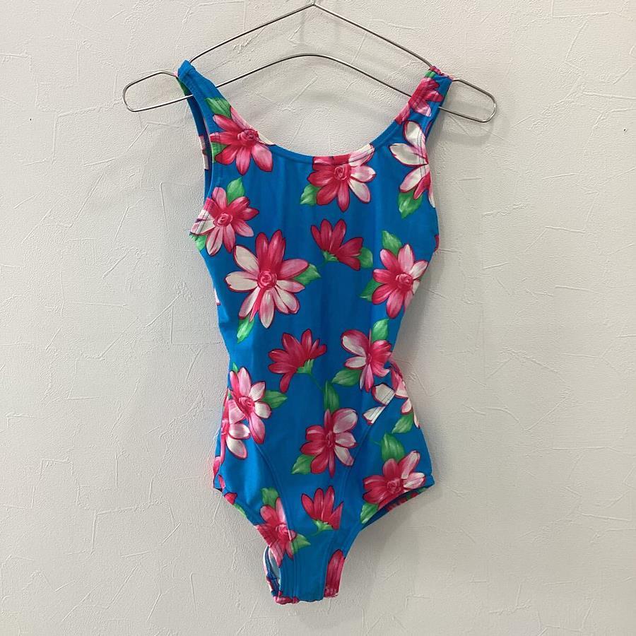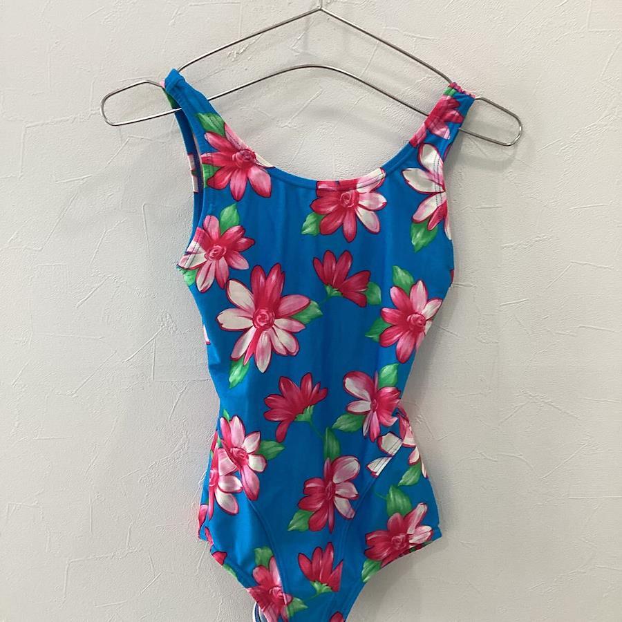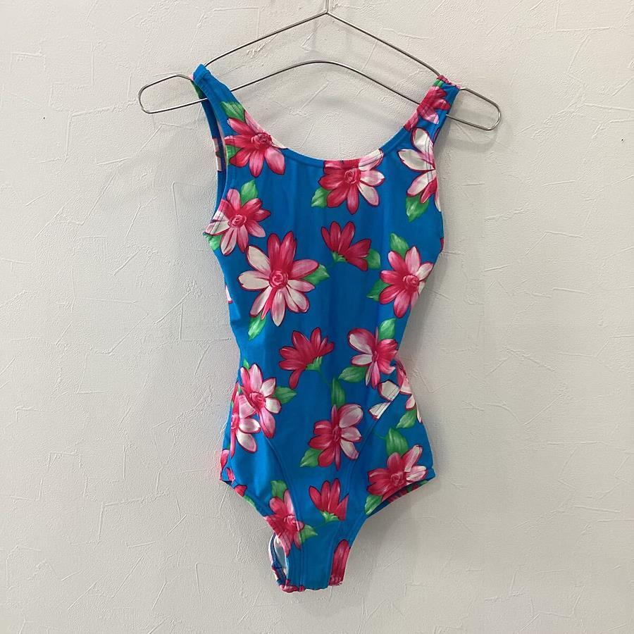 MZ12 スイムウェア 水着 レトロ 花柄 ワンピース レディース M ブルー
