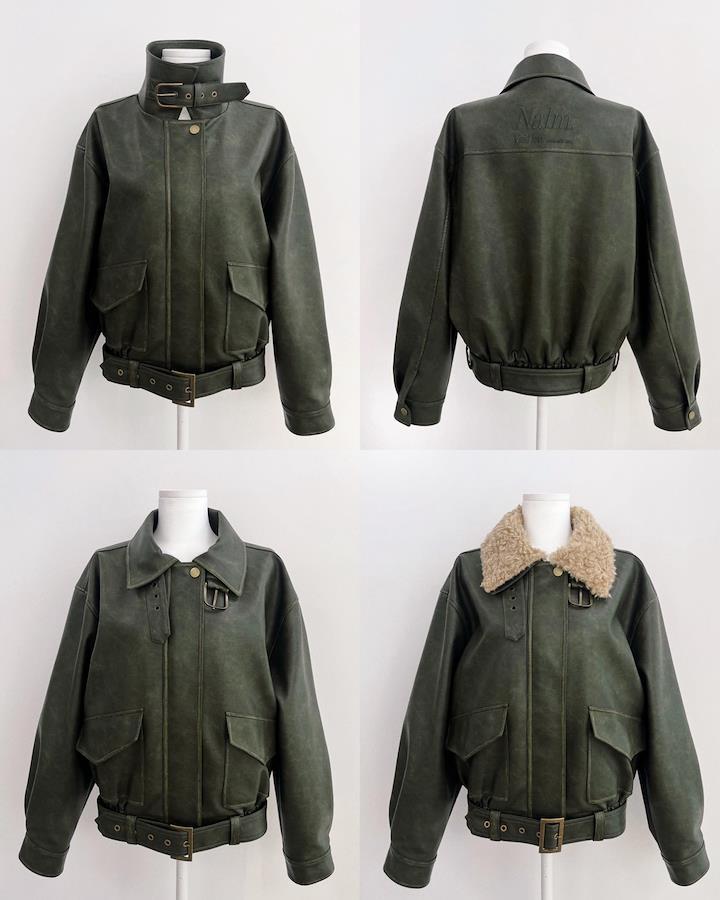 ________🏷 : Nalm. vintage leather jacket / khaki ̄ ̄ ̄ ̄ ̄ ̄ ̄ ̄