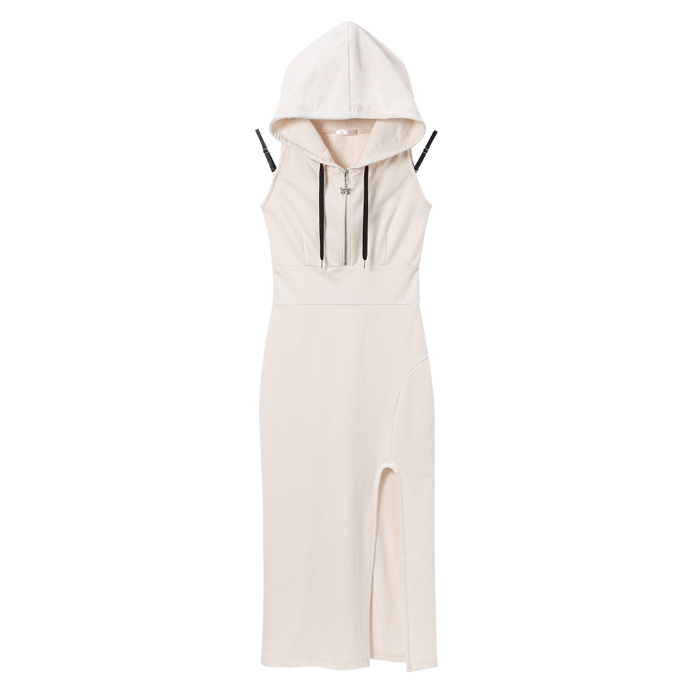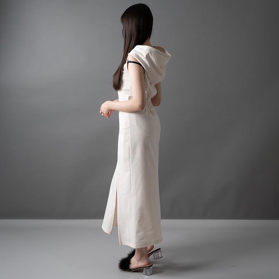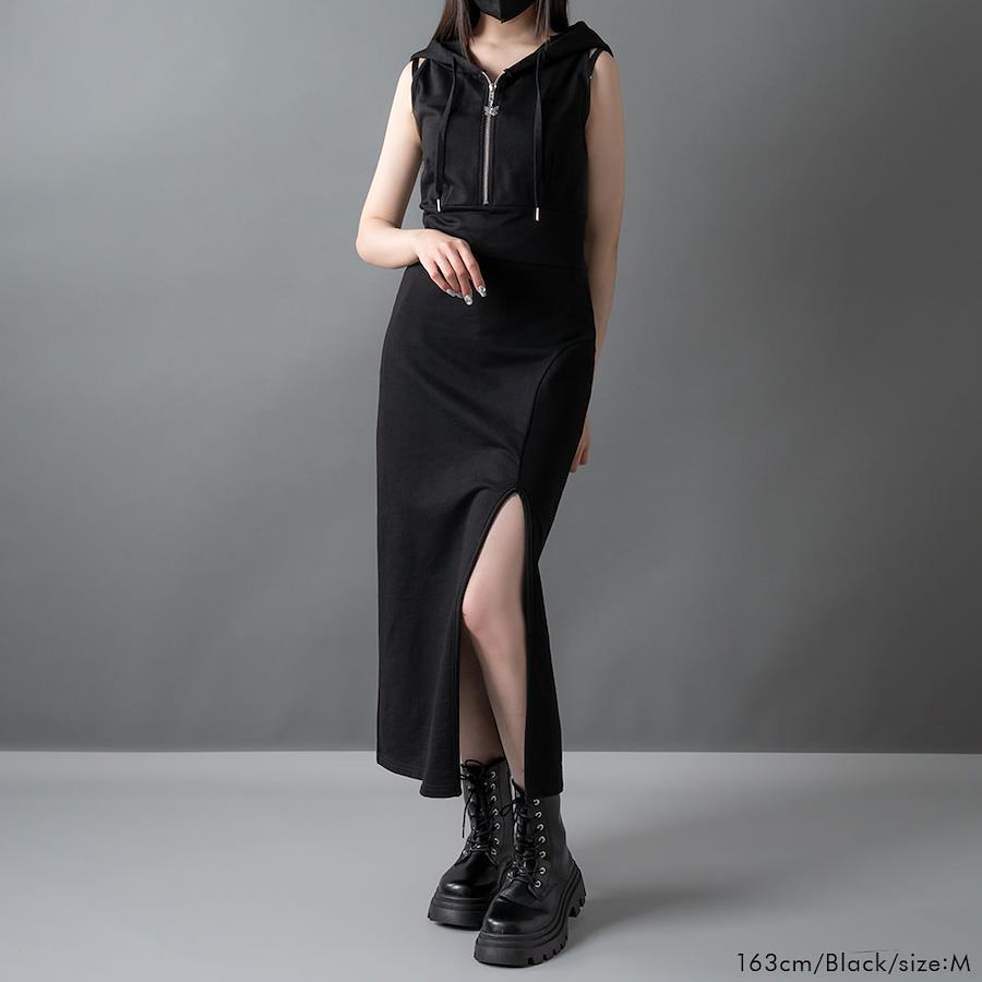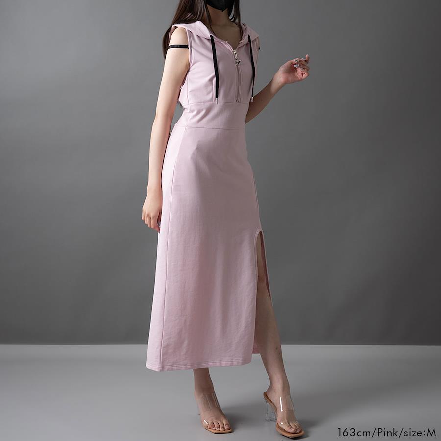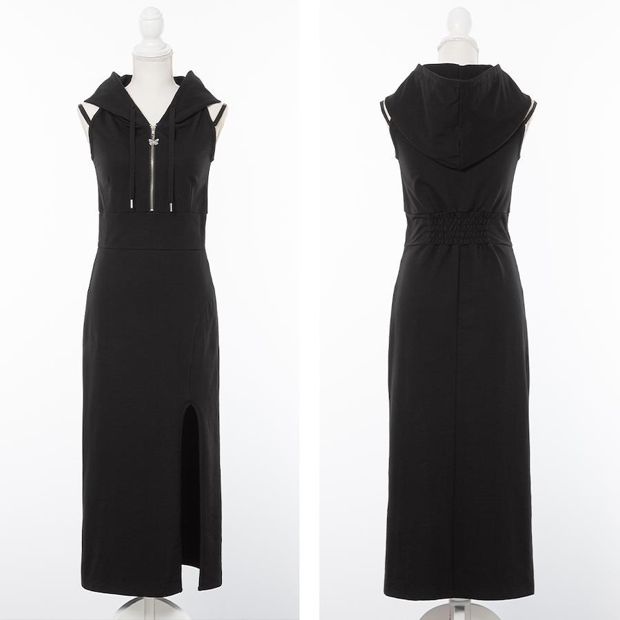 ”カジュアルだけど色っぽい”ロングワンピース【デザイン】Iラインシルエットがボディラインをすっきりと見せ、自然とスタイルアップを叶えてくれるアイテム。ファスナーの蝶々チャームは取り外し可能となっています。配色に惹かれるパイピングデザインや大きめフードなど、女っぽく着られるポイントを詰め込みました。深めのスリットを施したことで足捌きもよく、楽ちんにトレンドライクな着こなしが叶う1着です!【素材】着心地と伸縮性に優れたカット素材を使用しています。《透け感》カラーによってあり 《生地の厚さ》普通 《裏地》なし 《伸縮性》ややあり《生産国》中国