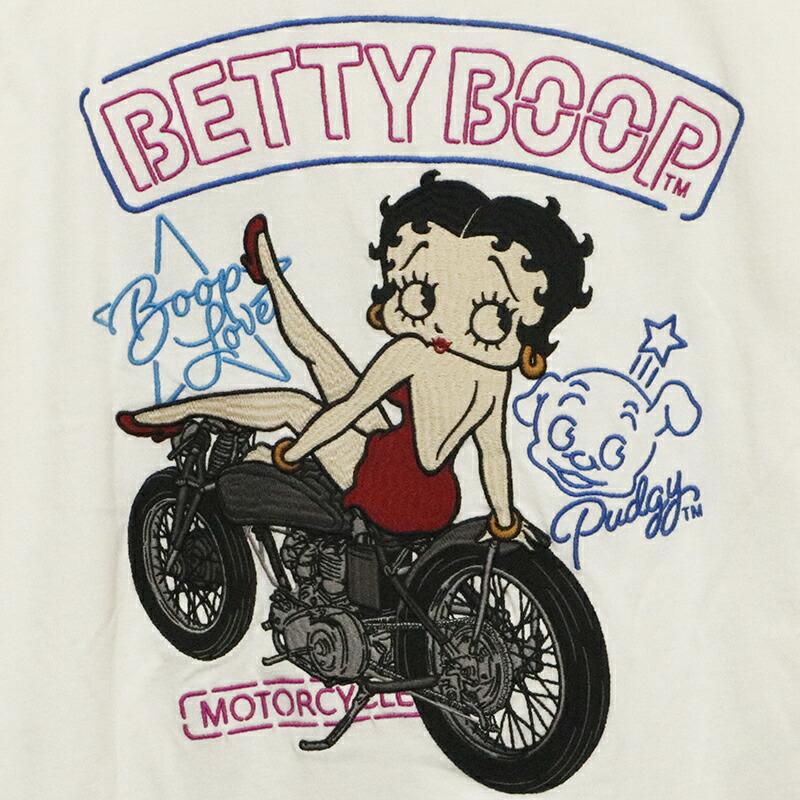 袖には右袖にBETTY BOOPロゴを、左袖にはmotorcycleロゴを抜染プリントで配置。