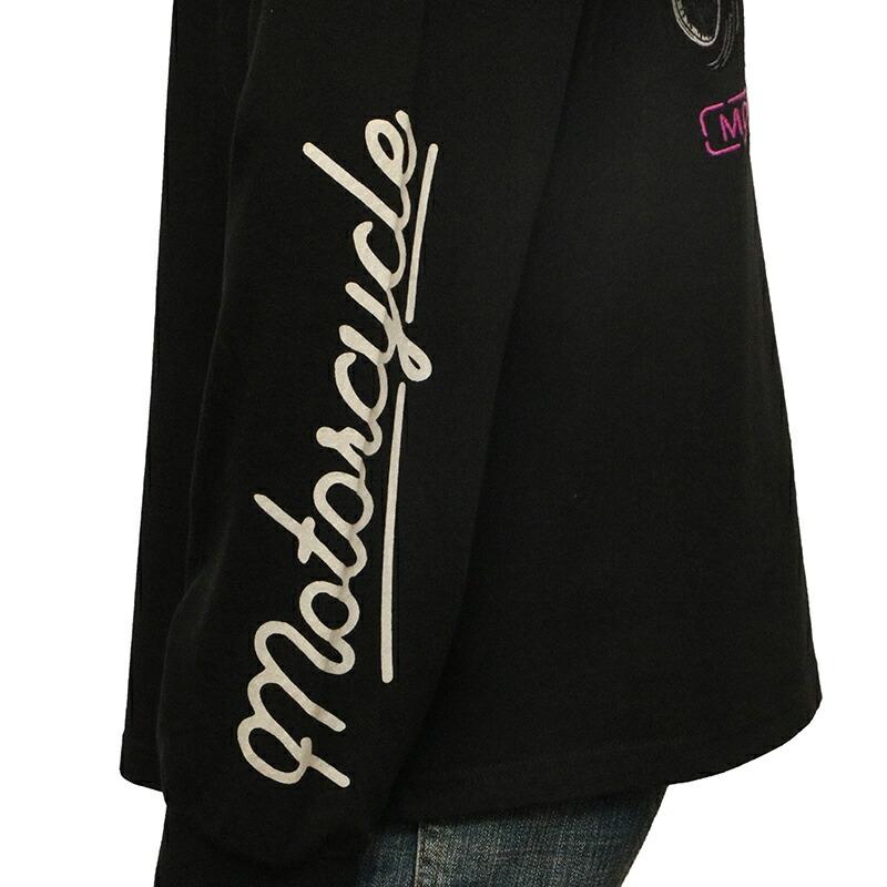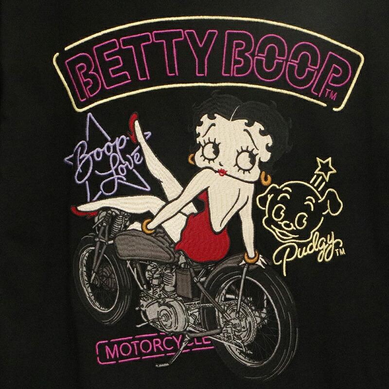 袖には右袖にBETTY BOOPロゴを、左袖にはmotorcycleロゴを抜染プリントで配置。