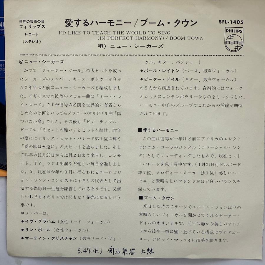 New Seekers Showa Era Vintage EP Record "Aisuru Harmony Boom Town" 7-inch Extended Play