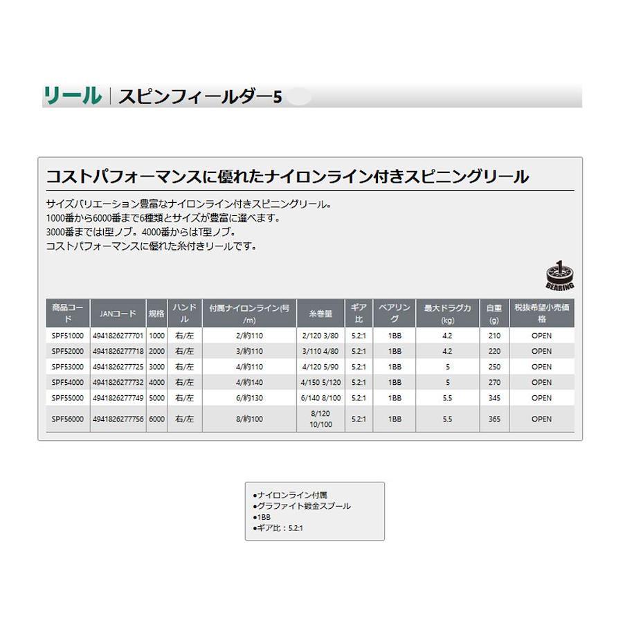 これから釣りをされる方にオススメするリーズナブルプライスリール。サイズバリエーションが1000番から6000番までの全6サイズと豊富なナイロンライン付きリールはお客様の用途に合わせてお選び下さい。お手頃でありながら、使用感の良いスムーズな回転をします。スプールはグラファイト鍍金スプール、ハンドルはワンタッチハンドルと基本性能も充実。コストパフォーマンスに特化したスピニングリールです。
