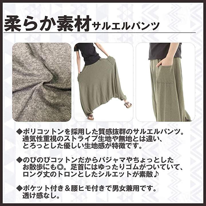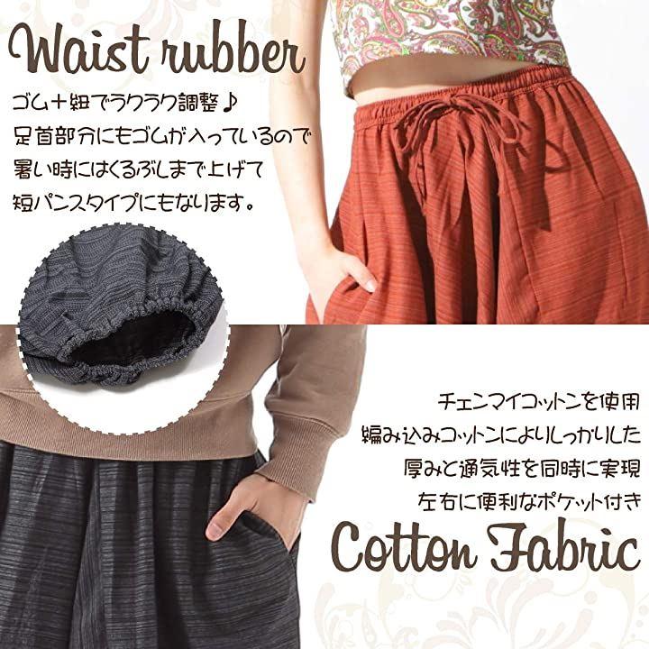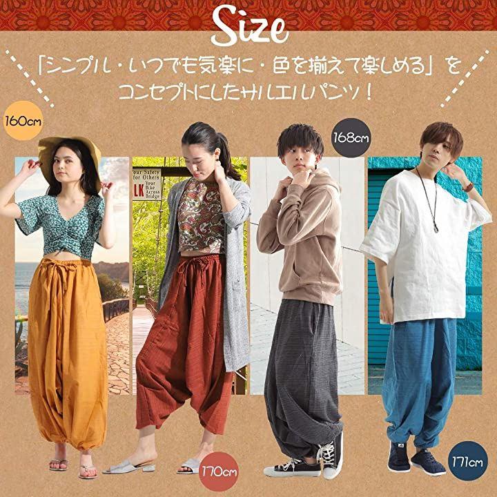 エスニックファッション・アジアンファッションというと、「柄が奇抜・デザインが派手・ボタンやチャックが多くて着方が分からない」など、様々な障壁がある様に思えますが、こちらのサルエルパンツは初心者の方にもラクラク着て頂ける「シンプル・いつでも気楽に・色を揃えて楽しめる」をコンセプトにしたサルエルパンツです。