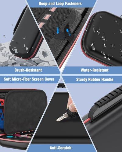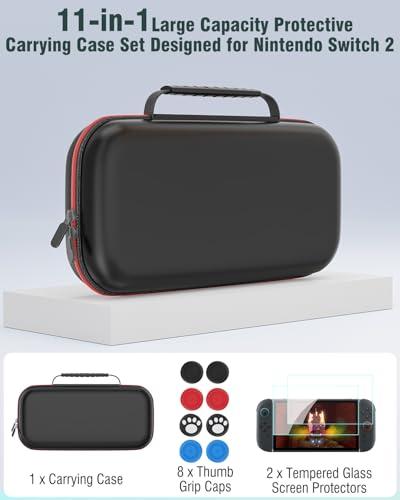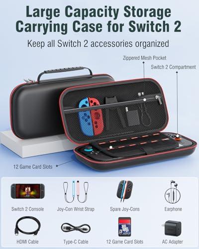 WATERPROOF & DURABLE DESIGN: Reinforced zipper waterproof hard shell provides complete protection from rain and dust from Switch 2 High density EVA material resists drops and impacts, making it safe for both indoor and outdoor use SUPER LARGE STORAGE SPACE: Holds 2 Switches, 2 Joy-Con, AC adapter, HDMI cable, earphone, and up to 12 game cards together. Built-in strap for secure fit COMPLETE ACCESSORIES SET: Includes 2 pieces of 9H hardness tempered glass film, alcohol cleaning cloth, and 3 colors analog stick cap. Instant protection & customization Comfortable Portability: Lightweight design (approx. 8.8 oz (250 g) and compact size. Smooth zipper and durable handle make it perfect for travel or commute SLEEK BLACK DESIGN: The matte texture and simple appearance complement the Switch 2 style. Microfiber lining inside protects screen and body from scratches (#lf)(#lf)(#lf)商品購入前に、ストア紹介ページをご確認ください。