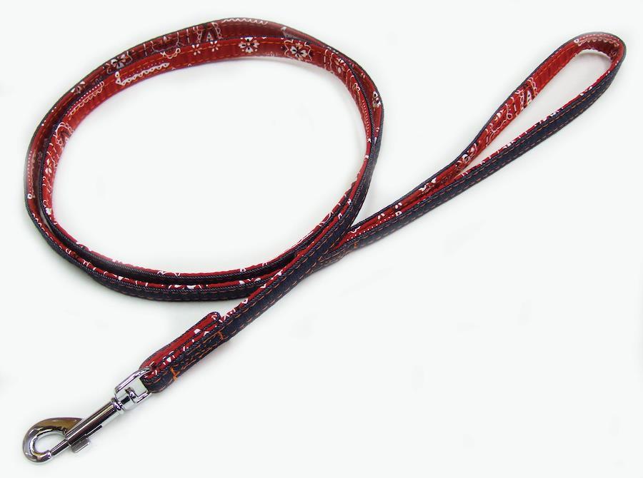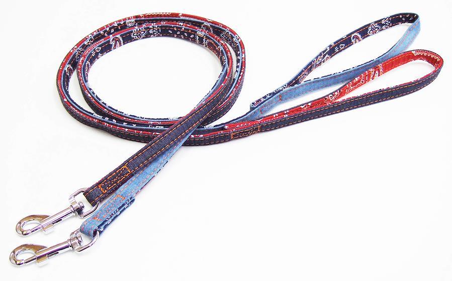 表面はデニム生地で、裏面にはペイズリー柄のコットン製生地を使用。シックなデニム生地とお洒落なペイズリー柄が可愛いリード。