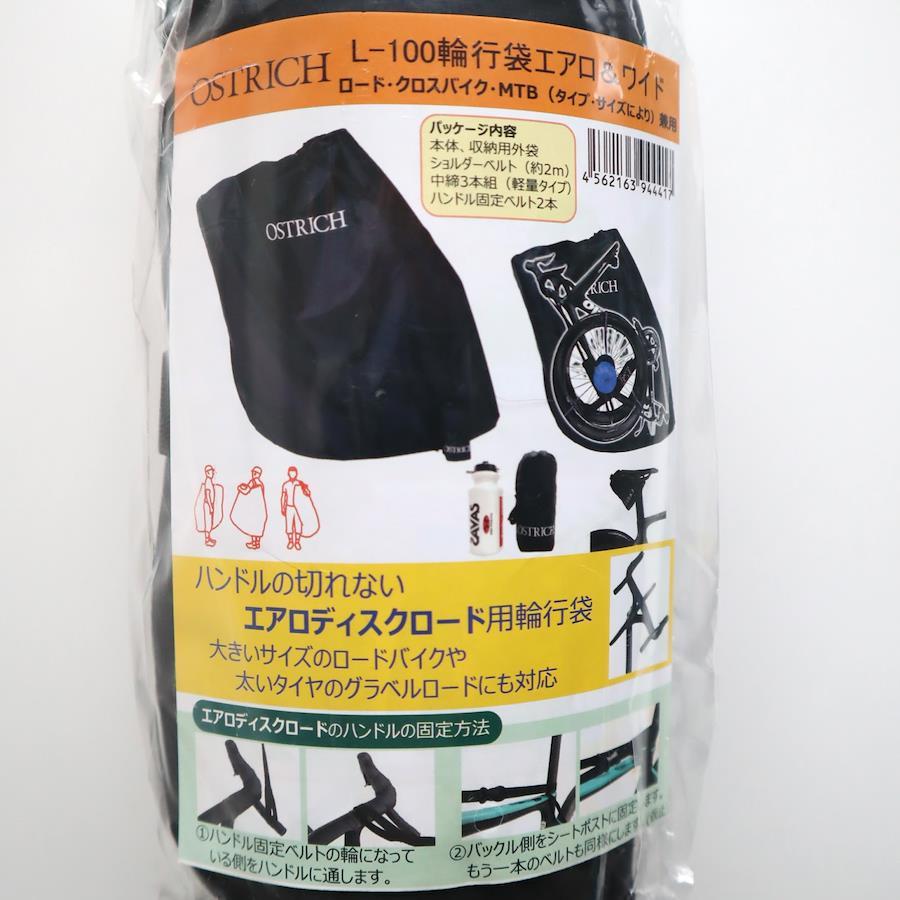 【詳細】■ 商品名・モデル:L-100 輪行袋 エアロ&ワイド■ ブランド:OSTRICH(オーストリッチ)■ カラー:ブラック(写真のもの)■ 状態:- 傷・汚れ:外装ビニールに保管によるスレあり- 使用感:新品未使用の保管品です- 動作確認:未開封のため未確認■ 付属品:- 本体- 収納時内袋- ショルダーベルト(約2m)- 中締めベルト ×3- ハンドル固定ベルト ×2