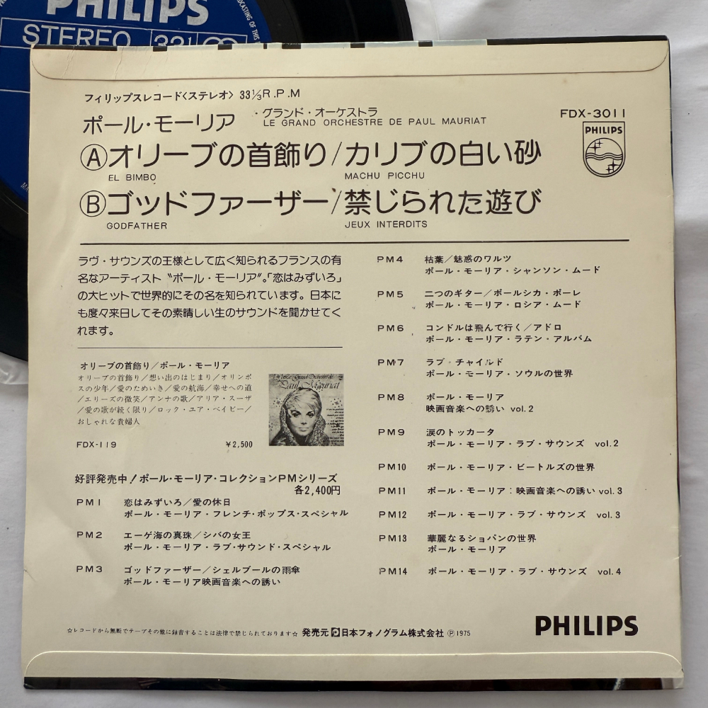 Paul Mauriat Showa Era Vintage EP Record Olive Necklace Godfather 7-inch Extended Play