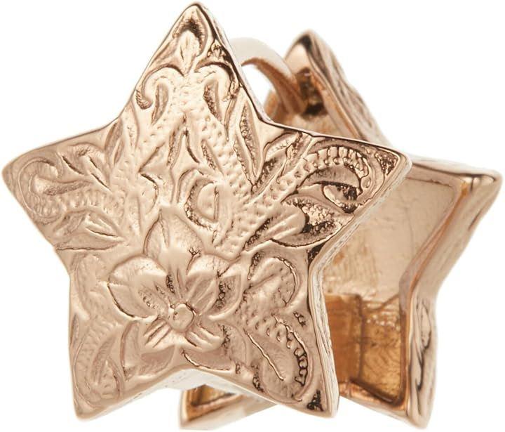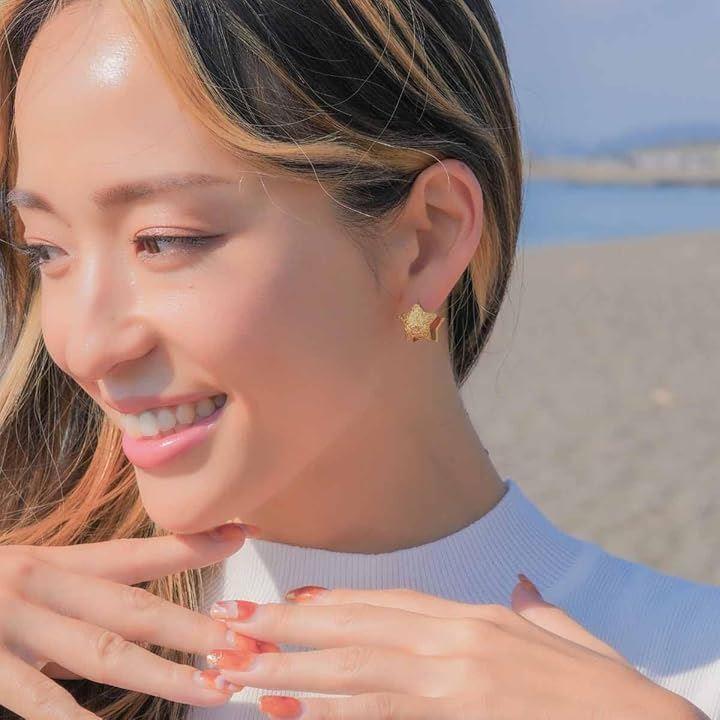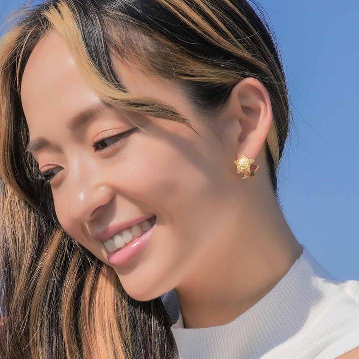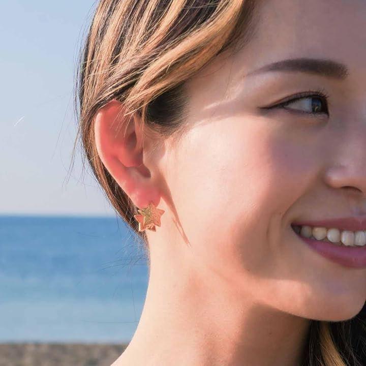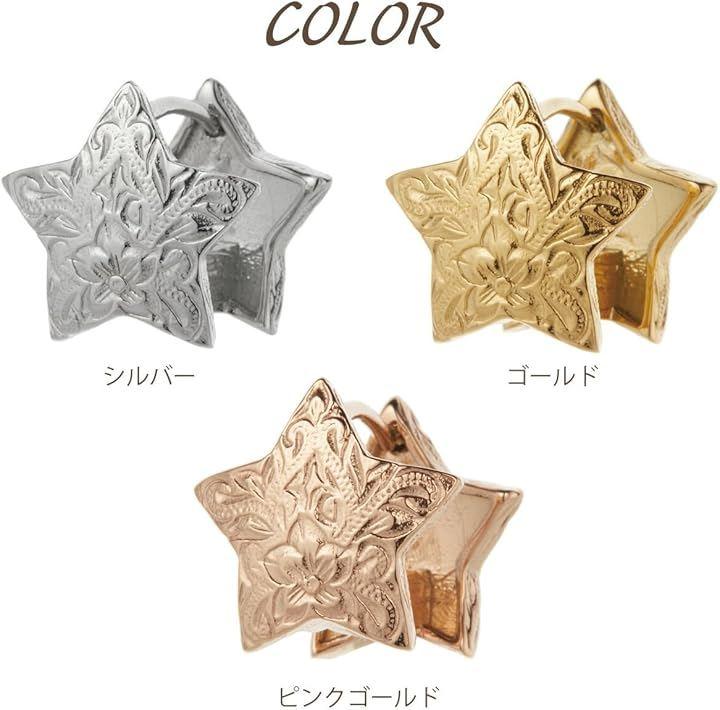 ハワイアンモチーフを贅沢に詰め込んだ スター型のフープピアスです。