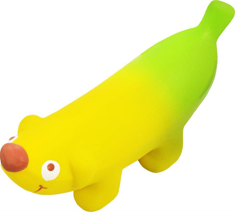 バナナそっくり!ワンちゃんモチーフのラテックストーイ。おいしそうなバナナの香り&スクィーカーつき。バナナなのか犬なのか、ユニークでかわいいおもちゃです。