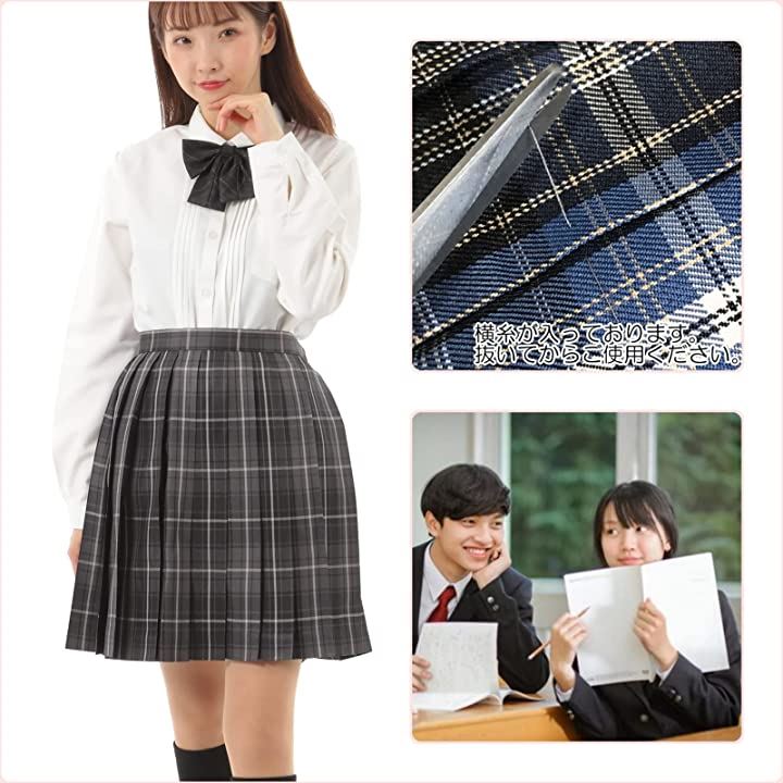 制服コーデはスクールセーターやネクタイ等で楽しめますが特に夏の時期はトップが半袖シャツとネクタイの小物等で限られてくるのでボトムス(スクールスカート)の柄を変えることでお洒落の幅が広がります。