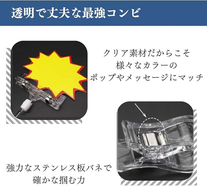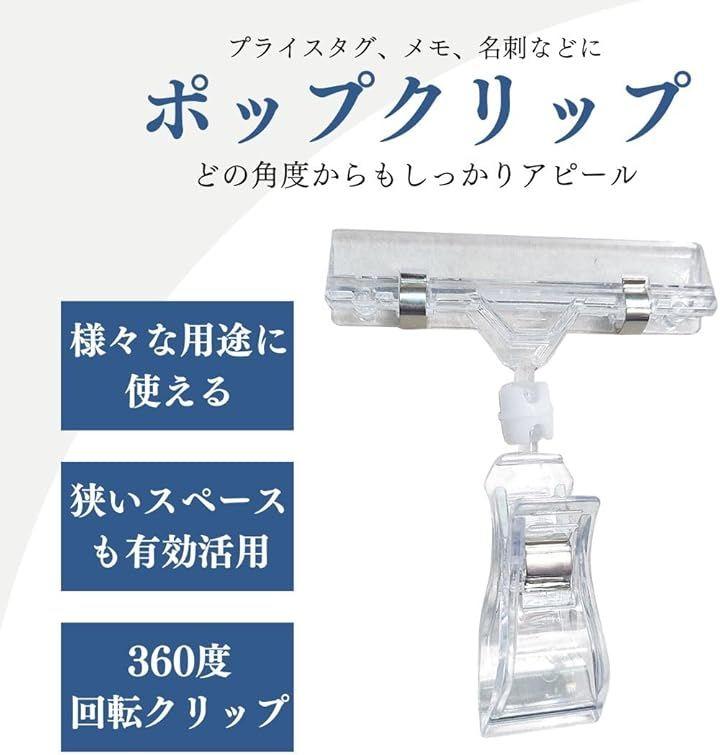 「小さなクリップ、大きな印象を」このポップクリップがあなたの商品を360度、どの角度からもしっかりアピール。場所やスペースを選ばず、プライスタグ、メモ、名刺など多岐に渡る用途で一役買い、貴方のビジネスを強力にサポートします。