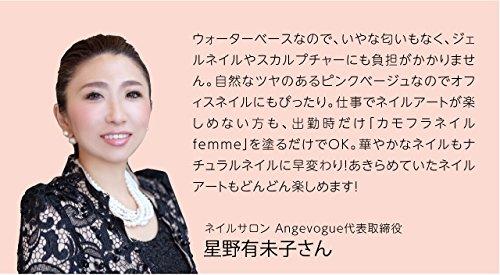 急な出張や来客時にネイルをオフしなければいけなかったり、普段からネイルを楽しみたいのに仕事で派手なネイルがNGだったり、ネイルアートを楽しみたいのになかなか楽しめない・・・という方に。「カモフラネイルfemme」を使えば、どんなときでもすぐに派手なネイルを落ち着いた上品ネイルにチェンジできます。さらに元のネイルを傷つけずにオフできるので、仕事のときはON!休日はOFF!してもっとネイルを楽しめます。