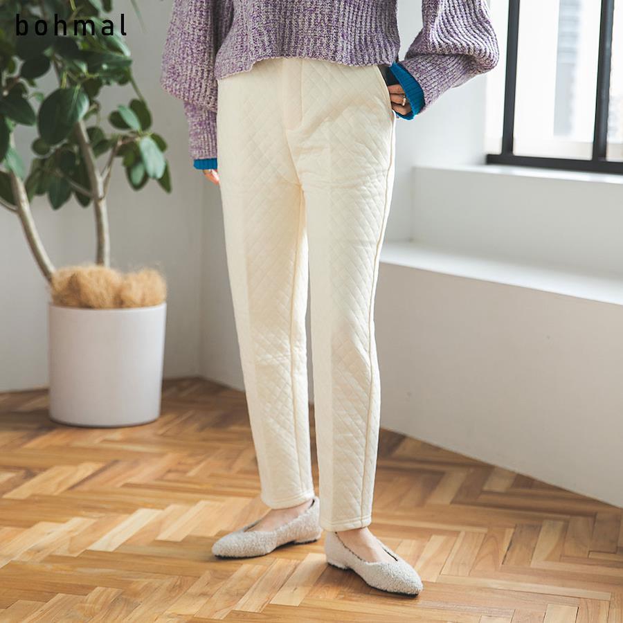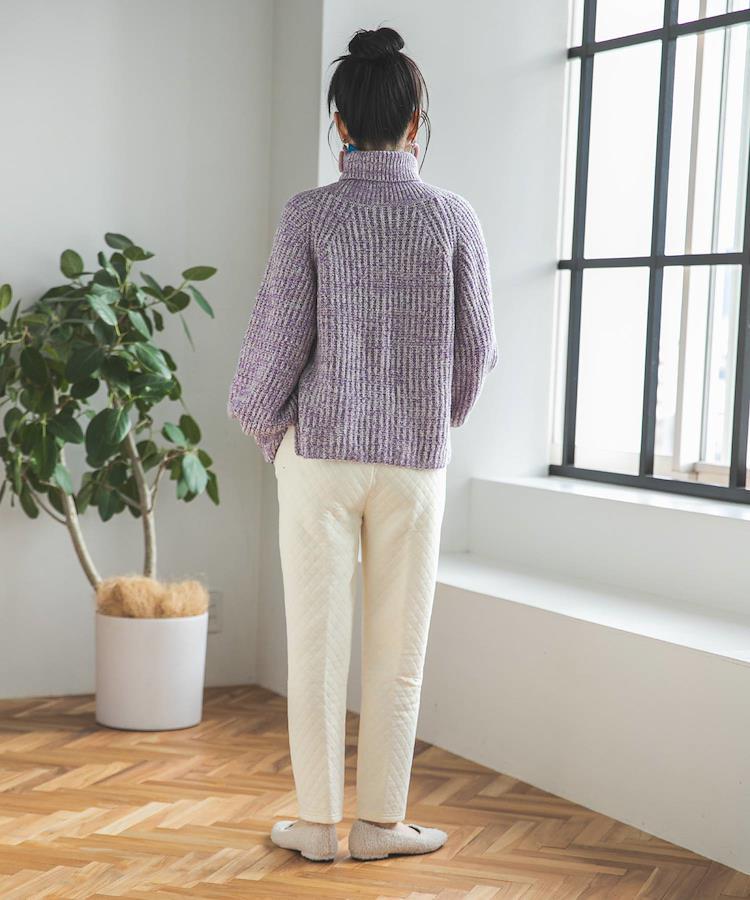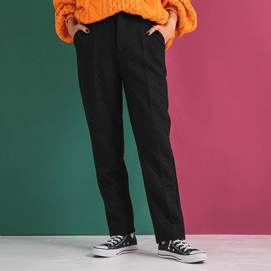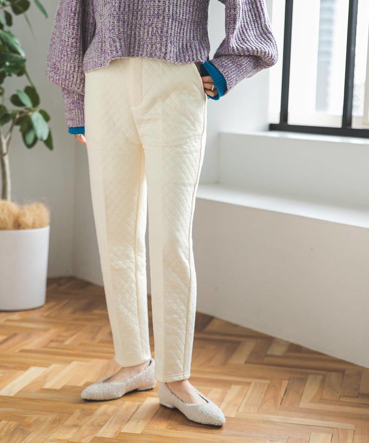 裾に向かって細くなるテーパードシルエットは、着ぶくれせずすっきりと着こなしていただけます。キルティングで暖かさを。テーパードシルエットで美脚効果を叶えた最強パンツ。