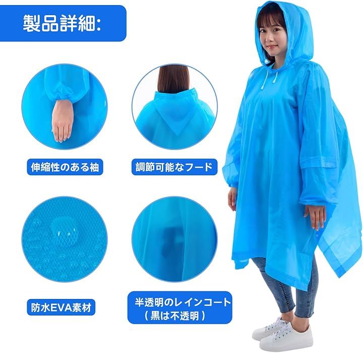 「EVA素材のレインコート」100%環境に優しいEVA素材で作られたユニセックス大人用レインポンチョは、無毒、無臭。