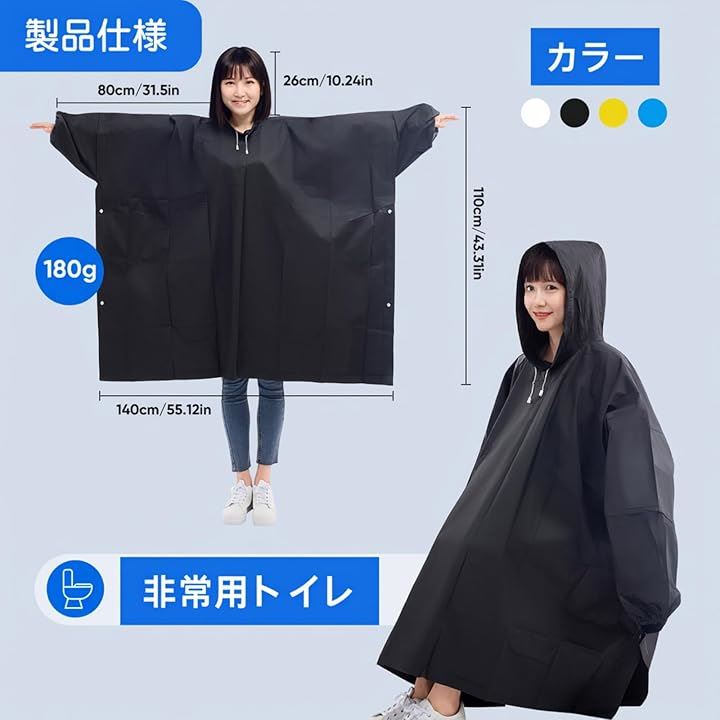 「DZTSMART レインポンチョ」フリーサイズです(適用身長:150~190CM;適用体重:40~95KG) 学生、高校生、男女兼用。