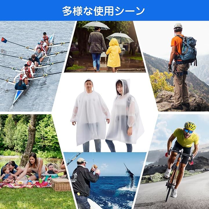 「男女兼用・軽量・通年使用」 レインポンチョは驚くほど軽量で、1枚約180g、小さく折りたたむことができ、緊急時のためにバックパック、荷物、自宅、車やオフィスに1つ入れておきましょう。
