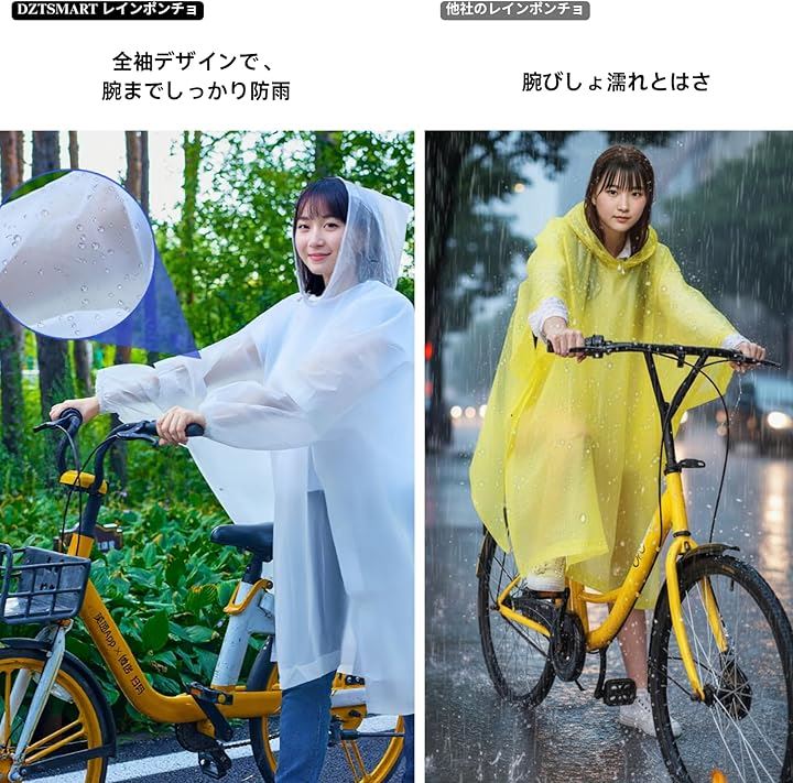 「多機能の自転車用レインコート」日常での使いやすさを重視し、ファッションと機能性を両立させたワンピース型レインコート。