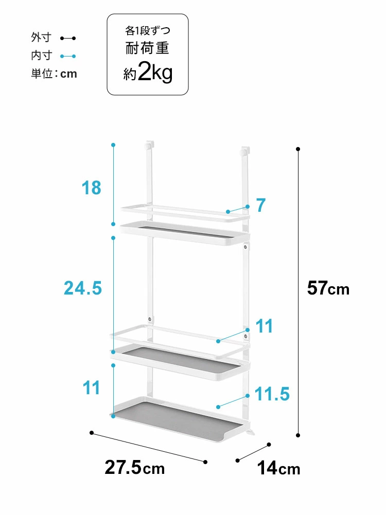 ■サイズ本体:約高さ57×幅27.5×奥行14cm[内寸]上段:約高さ18 ( 枠の高さ5 ) ×幅27×奥行7cm中段:約高さ24.5 ( 枠の高さ5 ) ×幅27×奥行11cm下段:約高さ11×幅27×奥行11.5cm