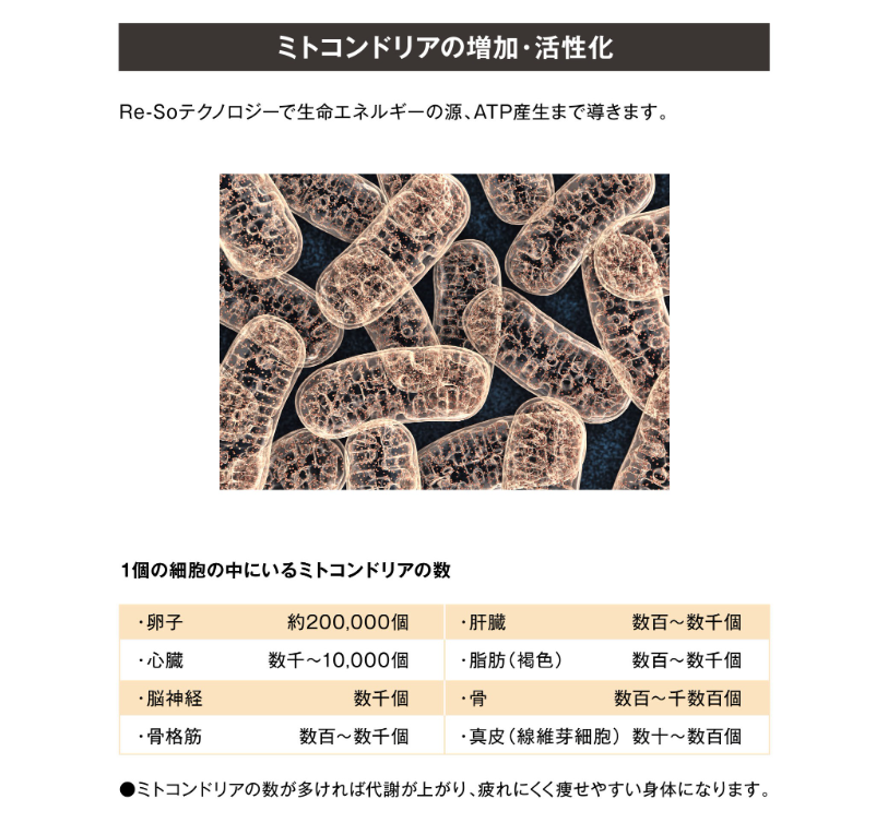 リ・ソテクノロジーで生命エネルギーの源、ATP産生まで導きます。