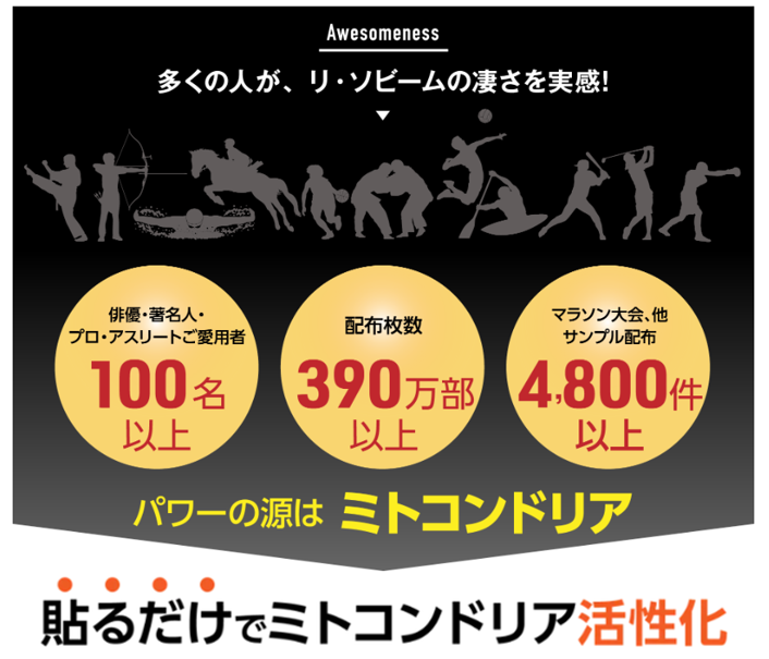 世の中には、ミトコンドリアを活性化する目的の製品は数多くありますが、貼るだけで人体と細胞2つの試験で、ミトコンドリアが“増加” “活性化”というエビデンスを取得した製品は、当社以外に存在しません。