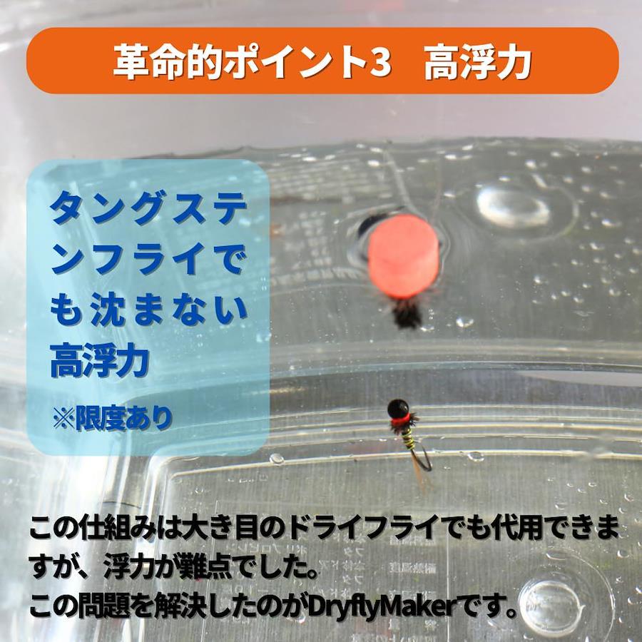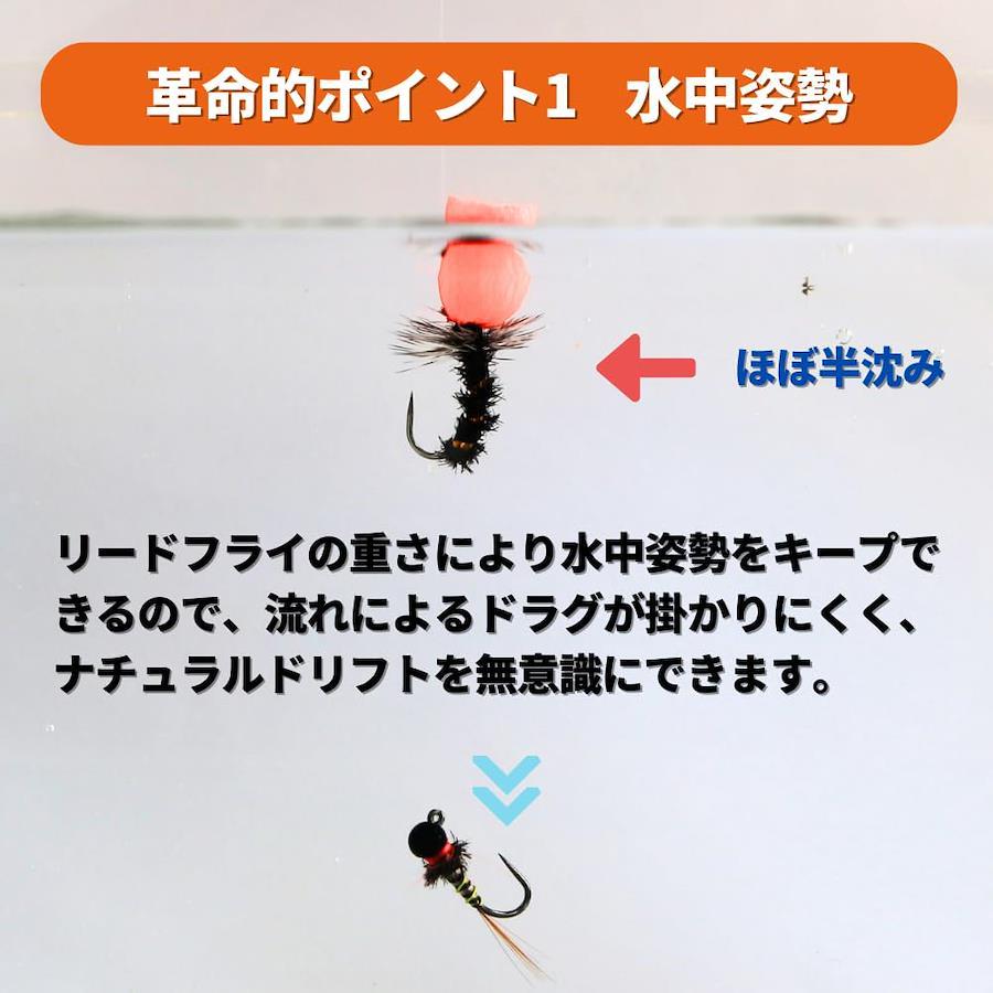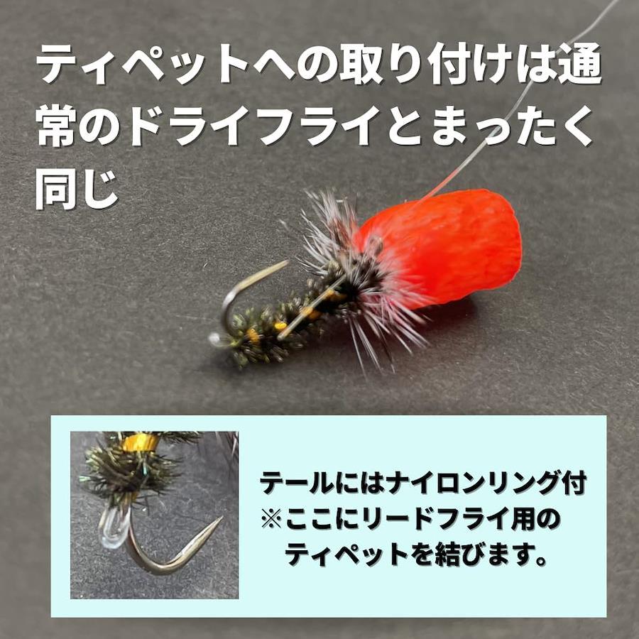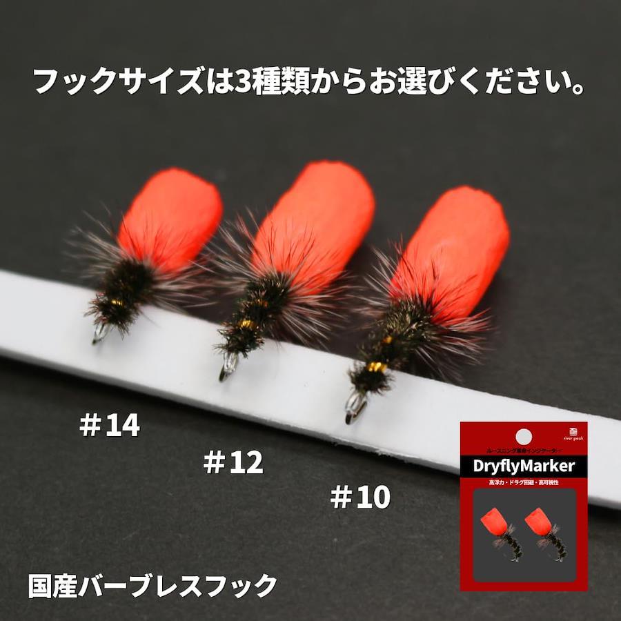 ドライフライ型ルースニングマーカー水面も水中も同時に探れてどちらに魚が反応してもヒットするツーウェイ釣法ドライかニンフか迷った時のパイロットシステムとしても活躍します。サイズ展開 #10, #12, #14国産バーブレスフック 2個セット