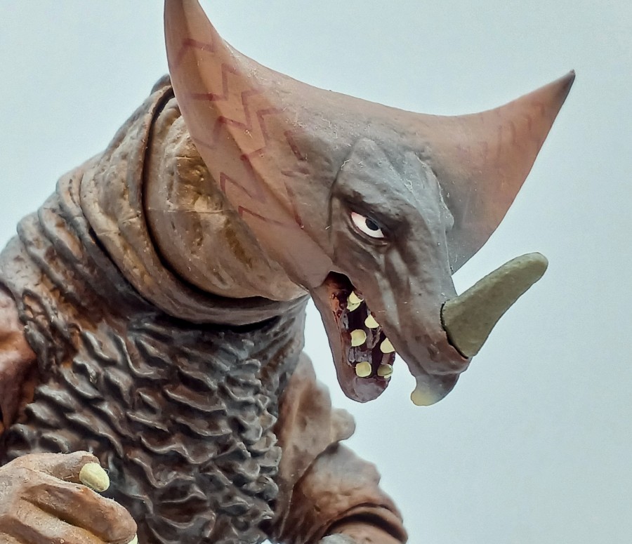■特徴・備考『ウルトラマン』の「怪獣殿下前篇/後篇」に登場した古代怪獣ゴモラ。当時のスーツをイメージした左右非対称な造形