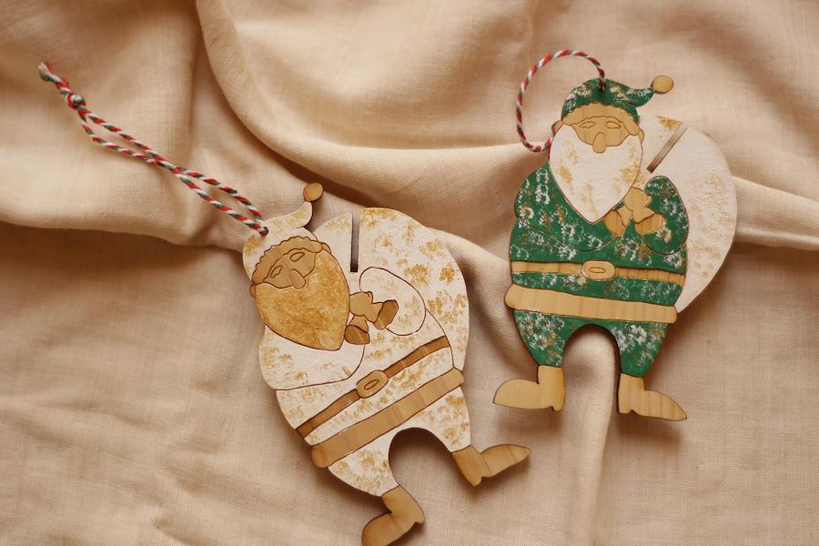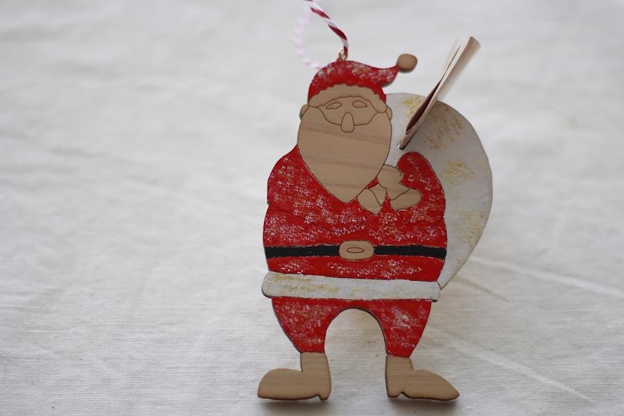 兵庫県多可郡多可町のひのきを使用したクリスマスオーナメントサンタクロースをモチーフに制作いたしました。こちらは、ペイントありの作品です。ひとつひとつ、手描きで色付けを施しています。ペイントの配置はお写真と異なる場合がございます。
