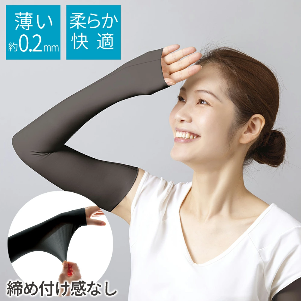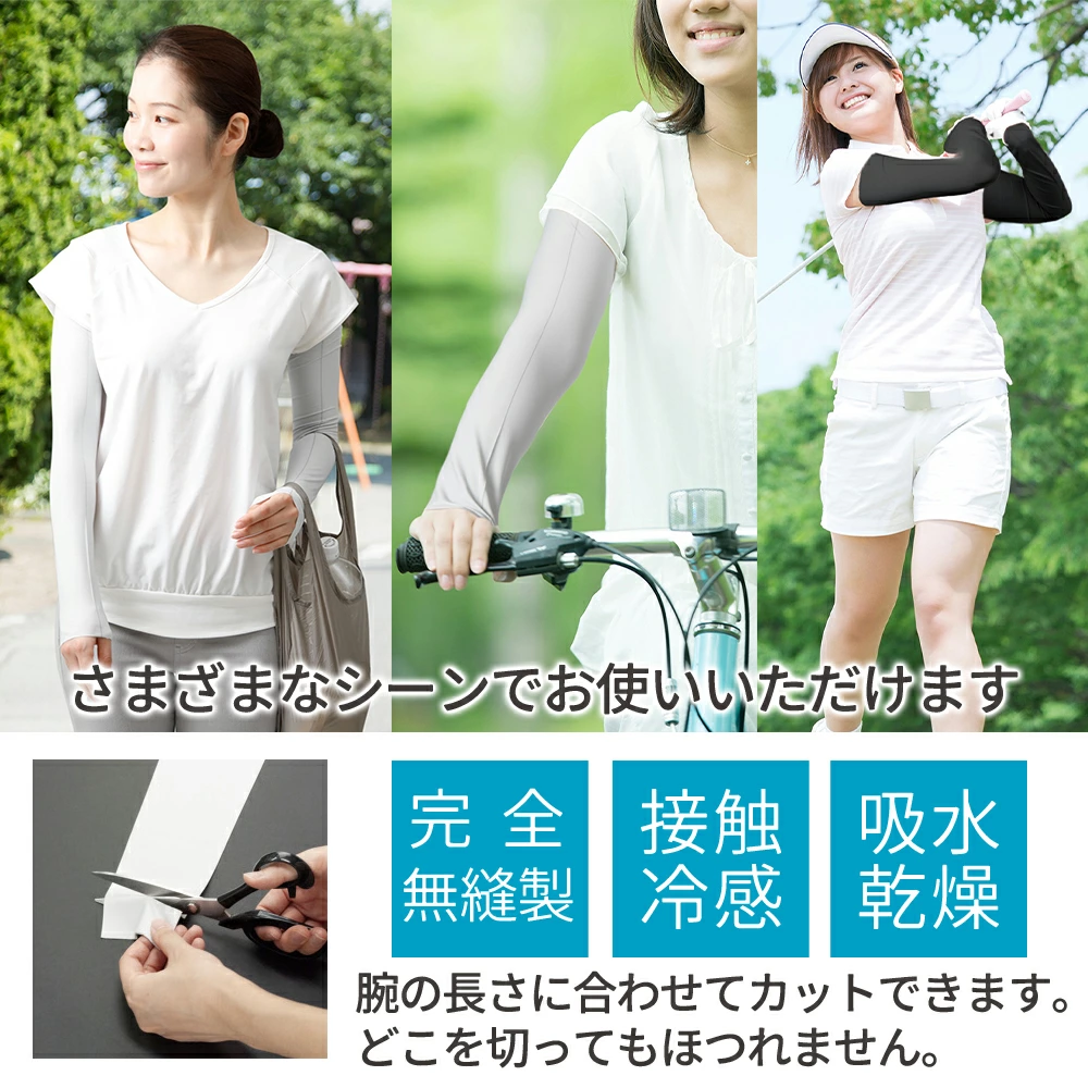 【商品名(JAN)】シームレスUVカバーなめらかブラック(4528870627302)シームレスUVカバーなめらかグレー(4528870627319)【商品サイズ】全長50cm【材質】ポリエステル、ポリウレタン【製造国】中国【商品情報】素肌感覚のUVカームカバー。酷暑でも快適、100%無縫製。片腕約10gで軽い・約0.2mmで薄い・滑らかで心地よい・締め付けずに快適。ドライブ、お買い物、自転車、スポーツなどのさまざまなシーンでお使いいただけます。接触冷感・吸水乾燥。腕の長さに合わせてカットできます(ほつれません)UVカット99%以上、UPF50+。適用サイズ/二の腕周り22-30cm洗濯ネット使用で洗濯可能。