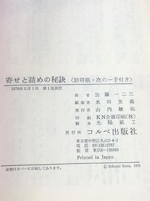 商品名:寄せと詰めの秘訣 詰将棋・次の一手付き 加藤一二三 著 、コルベ 出版