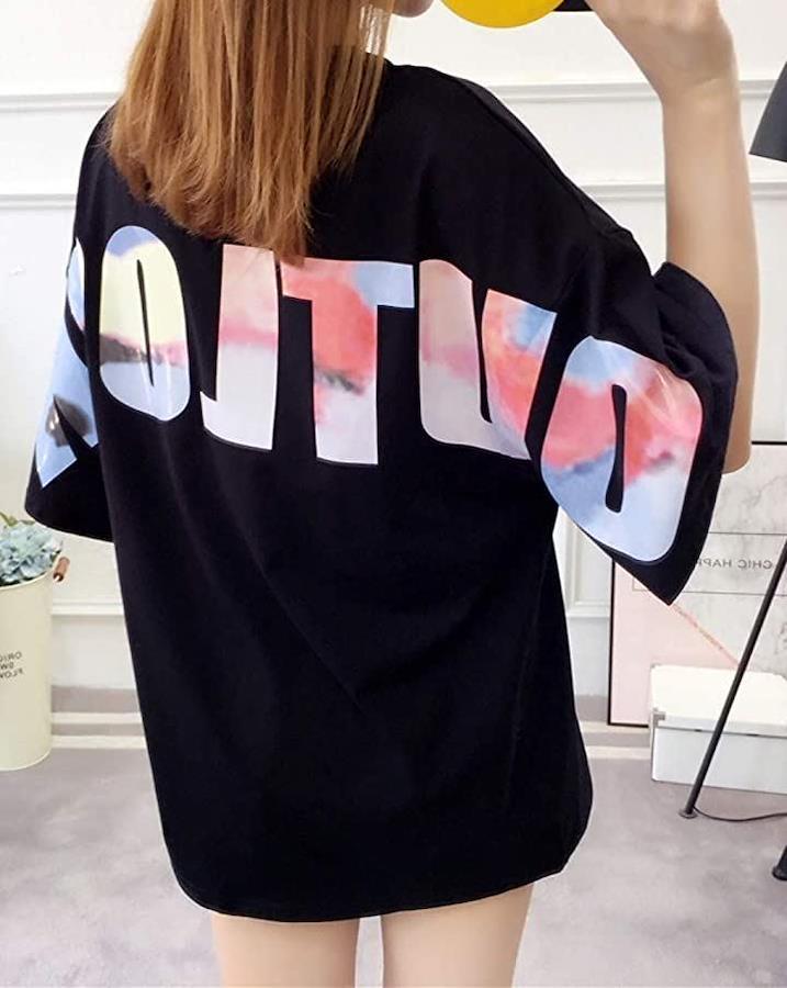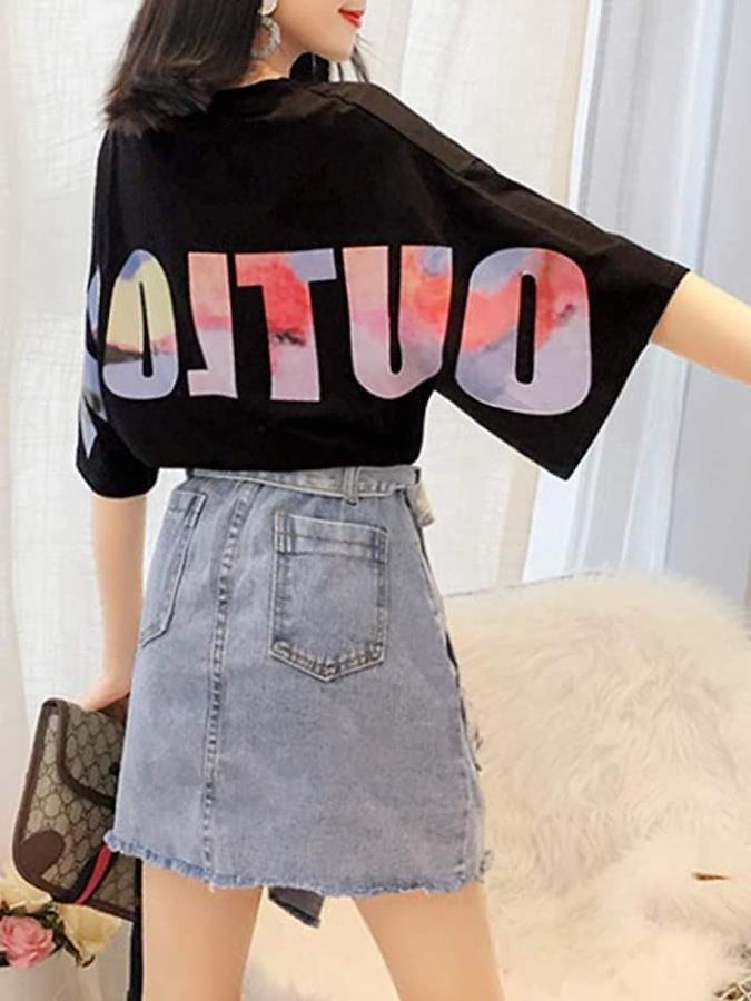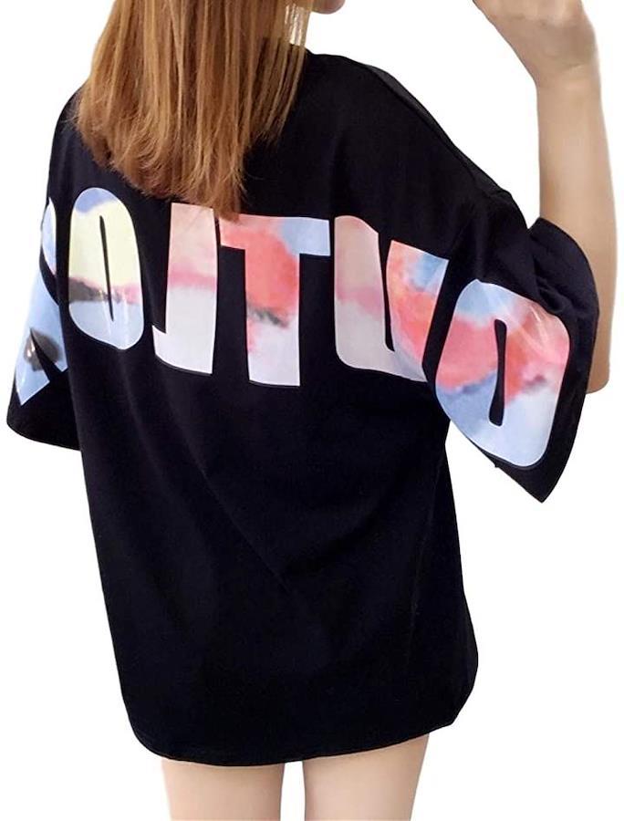 「[ブブオーハナ]Tシャツ半袖ゆったりカジュアルトップスロンTカットソーレディース」