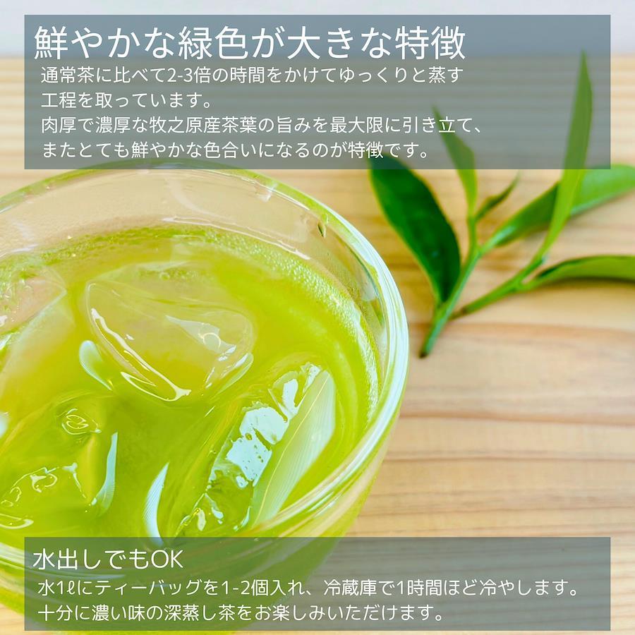 静岡県牧之原産の深蒸し茶を贅沢に使用しています。抹茶も加え、まろやかで、キレイな色味が特徴です。【免責事項】メーカーによる商品リニューアルに伴いパッケージ(内容量も含む)変更が行われた場合、新パッケージでお届け致します事ご了承願います。