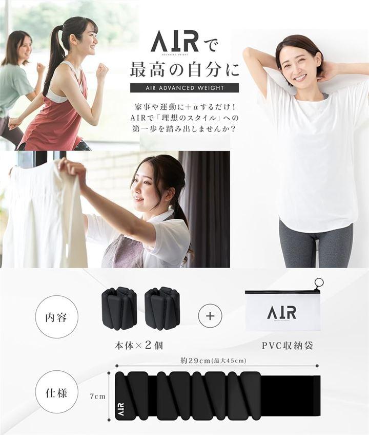 AIRは、女性が「毎日使い続けられる重量」を追い求めた結果、両側で約910gとリストウェイト・アンクルウェイトの中では、軽量の設定となっております。