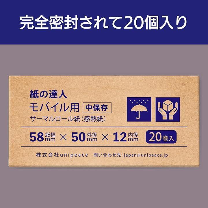 この商品は、用紙サイズ58mm x 50mm x 12mm、紙の厚さ62ミクロンで、約3~5年間の保存期間があり、常温で保管することで最適な状態を保ちます。
