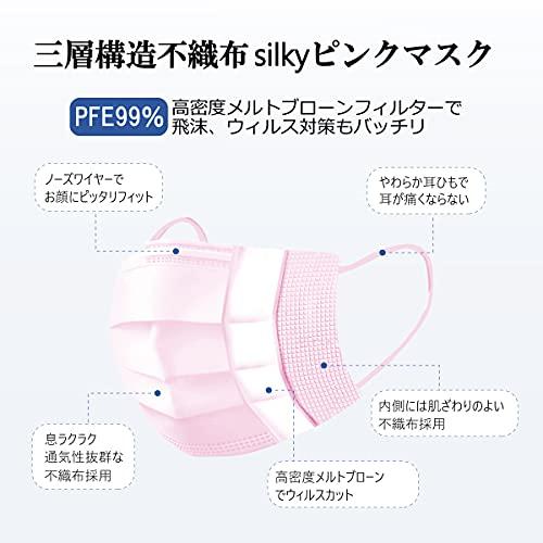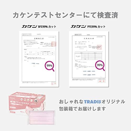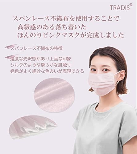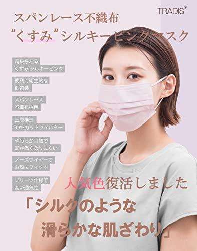 TRADISよりスパンレース不織布シルキーピンクマスクが新発売高級不織布であるスパンレース不織布を使用することによりシルクのような高級感のある生地感を実現全品日本国内検品済み。オリジナル包装箱でお届けいたします持ち運びしやすく衛生的な個包装使用高密度メルトブローンフィルターを採用した三層構造不織布マスクでウィルス対策にも最適ですカケンセンターでPFE99%ウィルスカット認証済み