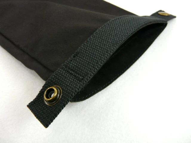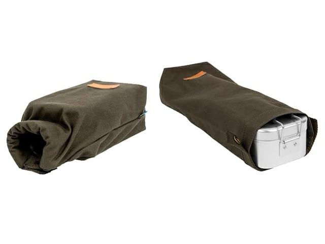 メスティンを入れた後に、袋の口を数回巻き上げ、巻き上げた部分のサイドに付いているボタンで固定し閉じる方式です。