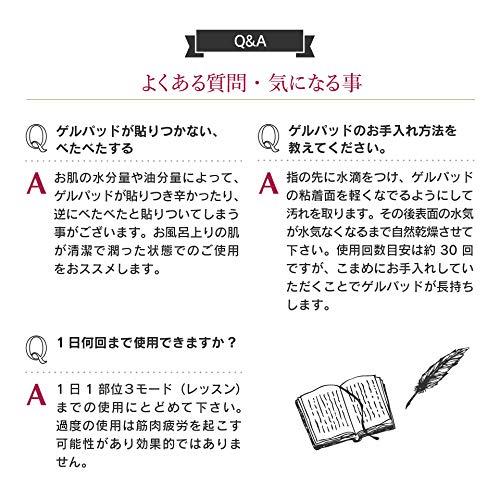 :貼るだけカンタン!場所を選ばず、1回10分でながらレッスン! 「ウイスタジオ クアロ」は4極タイプで、一度に広範囲を鍛えることができます。 選べる3つのモードを搭載(エアロシェイプ、マッスルプレス、ヨガ)、ボタン1つで簡単スタート。 一時停止機能搭載だから、一度停止しても中断したところから再開できます。