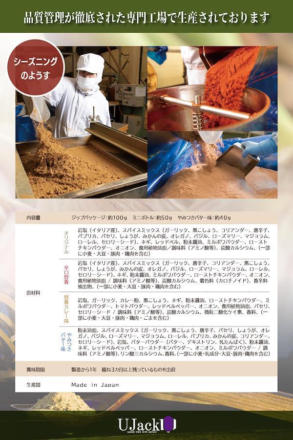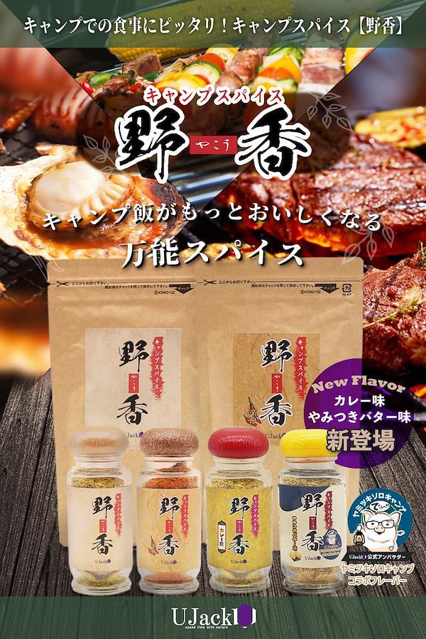 3営業日以内に発送≪新品未開封品≫キャンプ、アウトドアに最適な万能キャンプスパイス 全21種類のスパイスを独自に調合したキャンプスパイス「野香」は肉料理、魚料理はもちろん、アヒージョやホットサンドといった定番のキャンプめしにお使いいただけます。市販の調味料はしょっぱすぎる!というお声を受けて、「しょっぱすぎない」をコンセプトにガーリックとネギの風味をアクセントに加えてなんにでも合う調味料として開発されました、しょっぱすぎないのでアヒージョの素としてこれ一本で味付けを行うこともできます!パッケージはそれぞれボトルタイプと補充用のジップロック式となっております、ボトルタイプはスパイスが湿気りにくいようにソフトパッキンなどを備えおります。また、絶妙なサイズ感の内栓により適量を振りかけることができる仕様です。キャンプへの持ち出しにもちょうどいい50gのミニボトルサイズになっているのもポイントです。賞味期限は製造時期によって異なりますが概ね3ヶ月以上残っているものを出荷させていただいております。【重要】メーカーによる商品リニューアルに伴いパッケージ(内容量も含む)変更が行われた場合、新パッケージでお届け致します事ご了承願います。