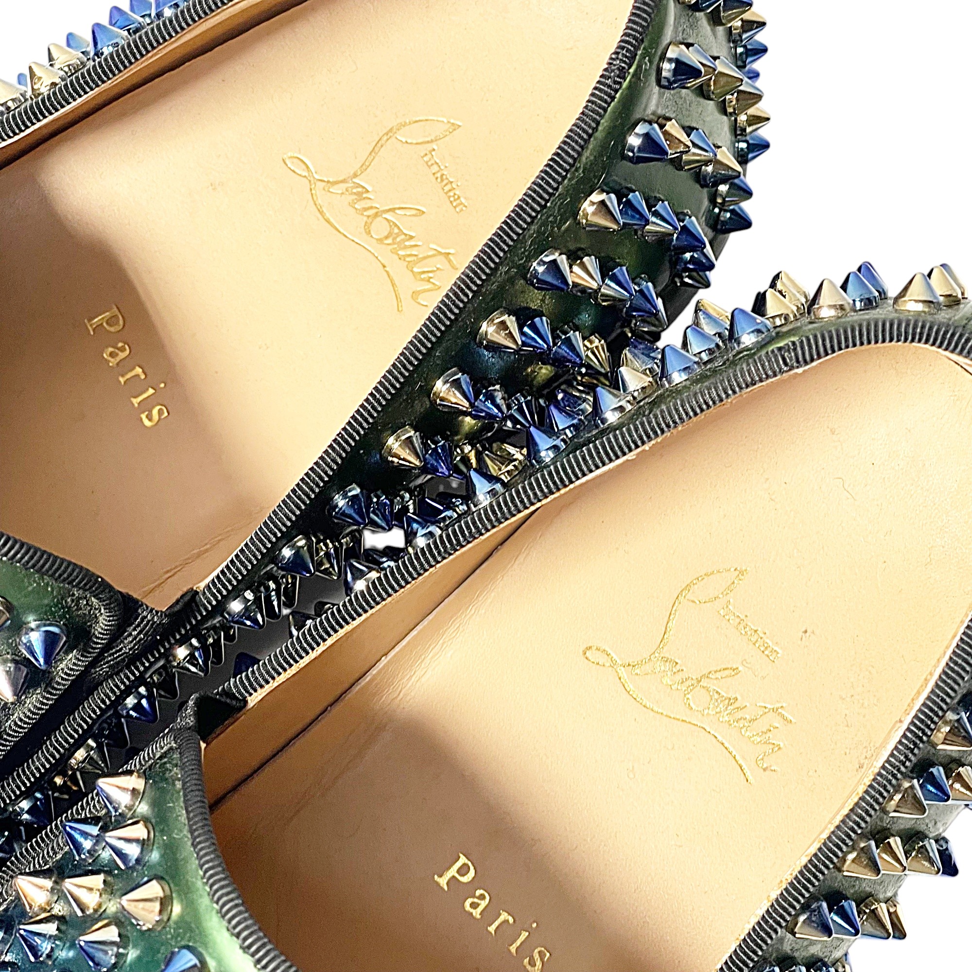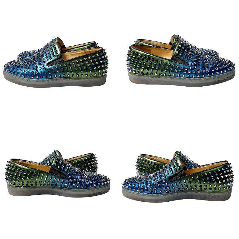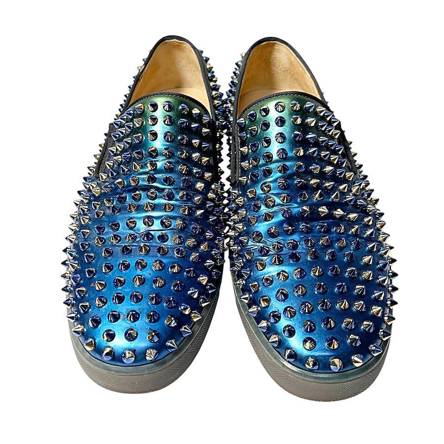 【ブランド】クリスチャンルブタン【品名】スリッポン/スニーカー【対象】メンズ【サイズ】42アウトソール全長29cm ワイズ10cm*多少の誤差はご容赦ください【素材】【原産国】EU【カラー】ブルー系【商品状態】ややシワと汚れあり。【管理番号】TJ10【付属品】なし【備考】-
