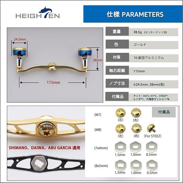 「サイズ」ノブ直径24.5mm、ハンドル軸心距離105mm/115mm 「総重」36.5g/38.5g「素材」70シリーズ航空アルミ。