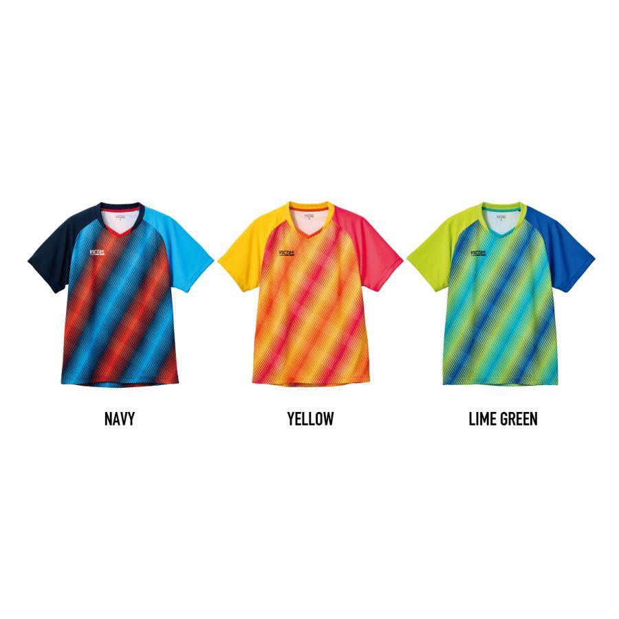 製造国:中国素材:ポリエステル100%(バックメッシュドライ)特長:JTTA公認, 吸汗速乾, 伸縮, UVカット, 抗菌, 防臭, 昇華プリントカラー:ネイビー、イエロー、ライムグリーン