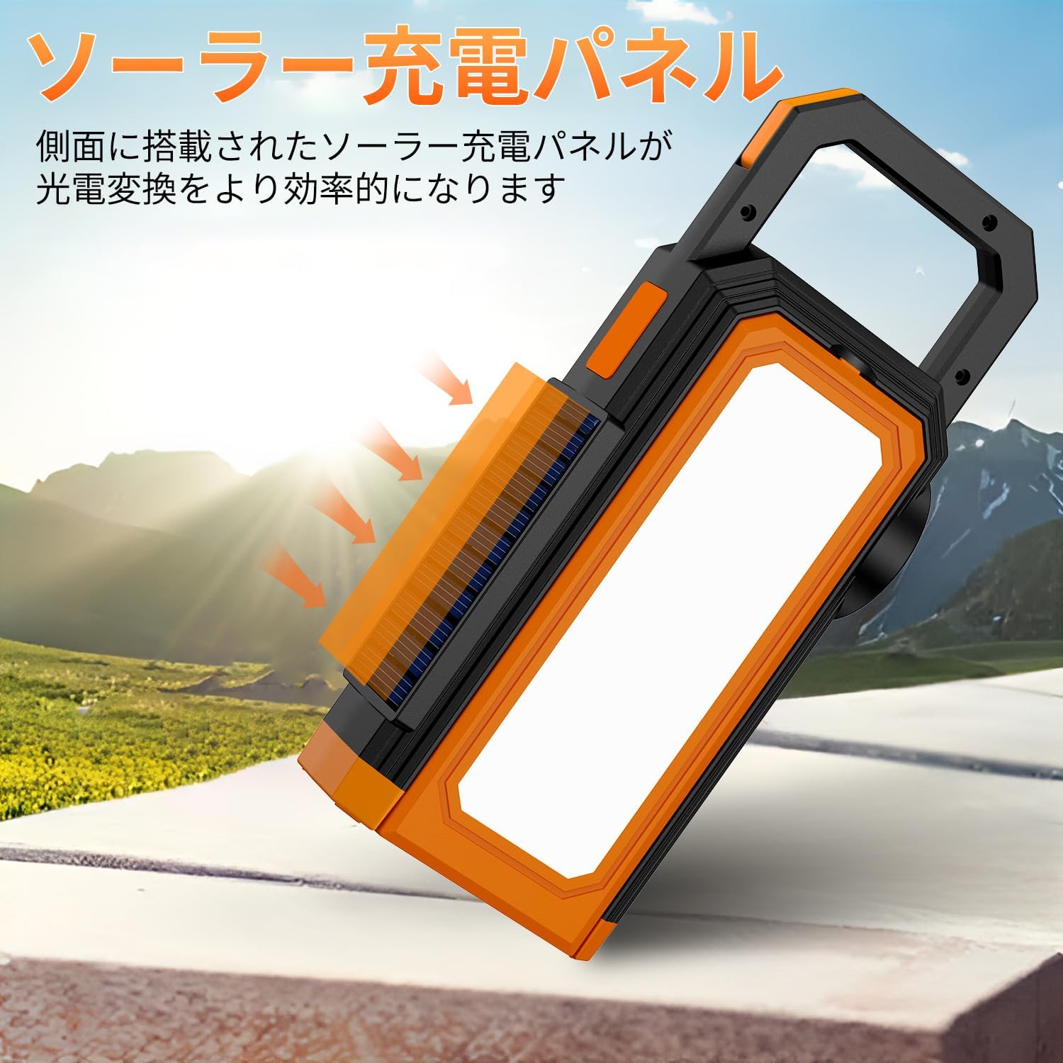 キャンプ用品 LED ライト USB 充電式 IP65 防水小さな明るいフック ソーラー充電キャリング ランプ LED 充電式キャリング ランプ LED 充電式シングル キャンプ ランタン キャンプ ランタン 充電式ミニ ランタン アウトドア製品 led ランプ キャンプ ランタン LED ファッション キャンプ ランタン led ミニ ランタン 小型ランタン キャンプ led アウトドア ランタン キャンプ ランタン 充電式小型ランタン キャンプ ランタン明るいキャリング ランプ led 小さなランタン?? 【ソーラー充電式・大容量バッテリー付き】本ソーラー ランタンはUSB充電とソーラー充電できるLEDランタンで、いつでもどこでも充電が可能です。【3200mAh大容量】このソーラー ランタンは3200mAh大大容量バッテリーを内蔵しています。本体側の入力ポートからランプへの充電が可能です。充電ケーブルが完全に挿入されたことをよく確認してください。2.1A出力のUSBポートでスマートフォン、タブレット、GPSなどの充電が可能です。非常用電源としても使用可能です。【6種類のライトモード】このソーラー ランタンには6つのライトモードがあり、ボタンを押すことで直接操作できます。 6つのモードとは、円形ライトが常時点灯、円形ライトが点滅、左側のパネルが単独点灯、右側のパネルが単独点灯、両方のパネルが同時に強く長く点灯、両方のパネルが同時に弱く長く点灯です。 シーンや使用者の需要に応じて、自由に選択・切り替えが可能です。【防水性・耐用性抜群】ソーラー ランタンは防水機能を備え、いかなる角度からの水しぶきも耐えられ、小雨、雪などの天気でも影響なく使えます。キャンプ、夜釣りや災害時などの様々な場合で夜間照明として役立ちます。また、特殊のABS素材で耐衝撃性、耐熱性、耐磨耗性に優れ、悪天候に耐えられ ランタン です。ご注意:完全防水ではないので、水面下に投入しないでください。【さまざまな場面で使える】キャンプのテント内の照明のほか、自宅の授乳灯、寝る前の読書とリラックスの時間です。キャンプや日常生活だけでなく、災害時に安心して使える防災グッズとして、用途が幅広くなっています。