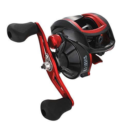 一回転による巻き取り量が多い為、手返し良く釣りができる8.1:1 高性能ハイコストパフォーマンスモデル。 バスフィッシングからソルトでの船釣りまでオールラウンドに使えます。クリック音付きスタードラグ ・マグネットブレーキ ・ワンプッシュクラッチ機構搭載自重:約230gギア比:8.1:1最大ドラグ力:8kg糸巻量目安:0.26mm‐140m/0.30mm‐110m/PE3号-100mボール/ローラーベアリング:18/1カラー:ブラック&レッドハンドル:左巻きながら回転の滑らかさはなかなかのものです。初心者からプロまでどなたにも使いやすい仕様となります。