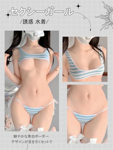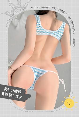 【誘惑の極小ビキニコスプレ】青白ボーダー、セクシーなランジェリー!登録情報素材構成 100% ポリエステル 【セット内容】ブラ+紐パン+ストッキング(3点セット)【素材】ポリエステル【サイズ】フリーサイズ、フリー 伸縮性はありますが。推薦体重40-60kg。【特徴】この極小ビキニコスプレセットで、大胆な誘惑に溺れましょう!鮮やかな青白ボーダーデザインが目を引くセットで、トレンディかつセクシーな雰囲気を演出します。ビキニトップとハイレグTバックの組み合わせは、女性らしさを引き立て、美しい曲線を強調します。蝶ネクタイストッキングで脚元も魅力的に演出します。【適用の場合】ハロウィン、クリスマス、コスプレ、パーティー、仮装、学園祭、文化祭、プレゼント、コレクション。