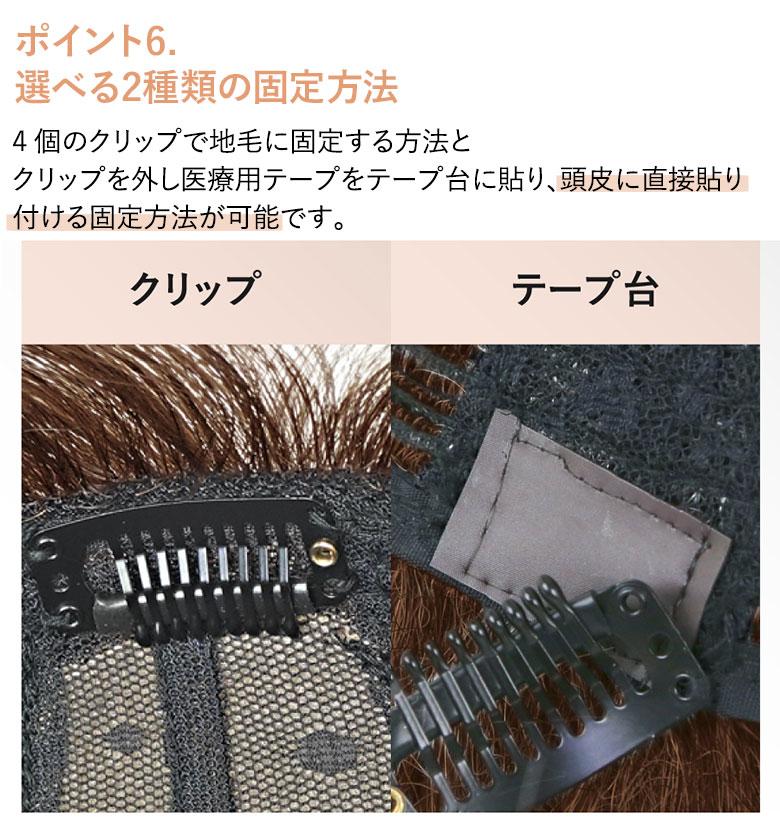 クリップで地毛に固定し半頭部分を広範囲にカバーできるウィッグです。