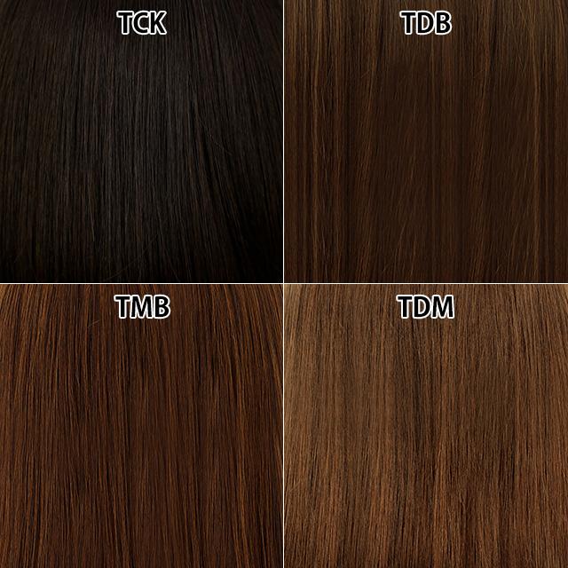 ・前髪はおでこがうっすら透ける程度の量感に調整し、まるで自毛の前髪のような透け感がポイント。