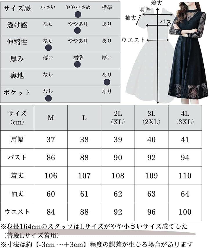 ◉素材&サイズ◉素材は、ポリエステル Mサイズ:肩幅 約37cm/バスト 約86cm/着丈 約106cm/袖丈 約60cm/ウエスト 約84cm Lサイズ:肩幅 約38cm/バスト 約88cm/着丈 約107cm/袖丈 約61cm/ウエスト 約88cm 2L=XLサイズ:肩幅 約39cm/バスト 約90cm/着丈 約108cm/袖丈 約62cm/ウエスト 約92cm 3L=2XLサイズ:肩幅 約40cm/バスト 約92cm/着丈 約109cm/袖丈 約63cm /ウエスト 約96cm 4L=3XLサイズ:肩幅 約41cm/バスト 約94cm/着丈 約110cm/袖丈 約64cm /ウエスト 約100cm サイズは全て平置きで測定しております。