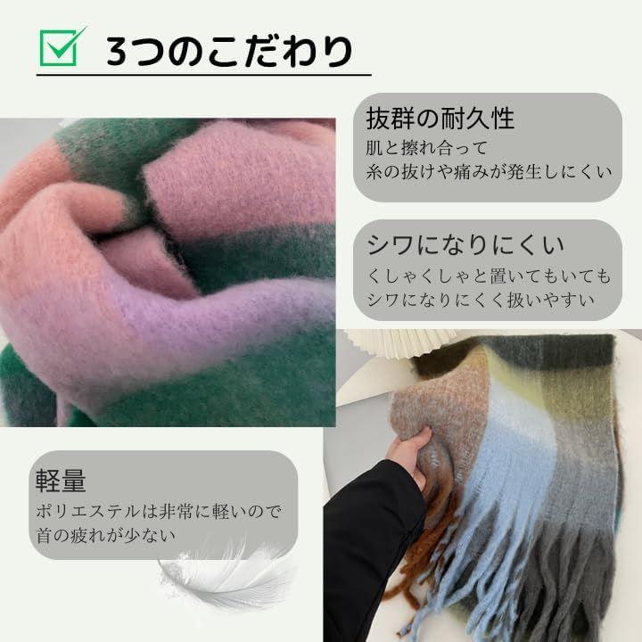 「商品説明」 ふんわりとした厚手素材が首元を優しく包み込む、ボリューム感たっぷりの大判マフラーです。