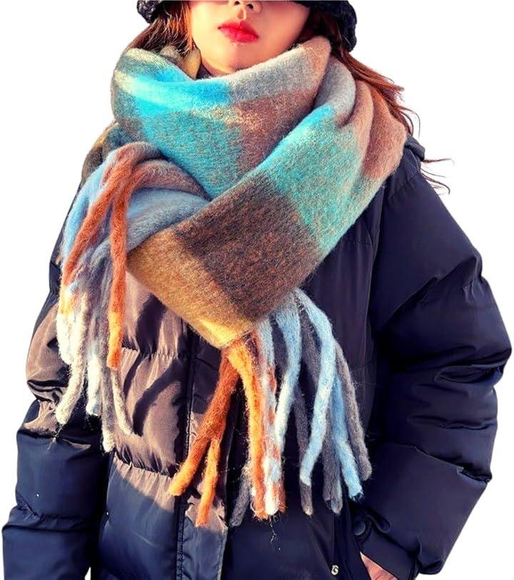 「使用例」 厚手マフラーは、寒い季節の防寒対策には必須アイテムで、首や羽織もの、お子様の昼寝布団としても様々な使い方ができます。。フリンジの長さ20cm.厚さ1cm。